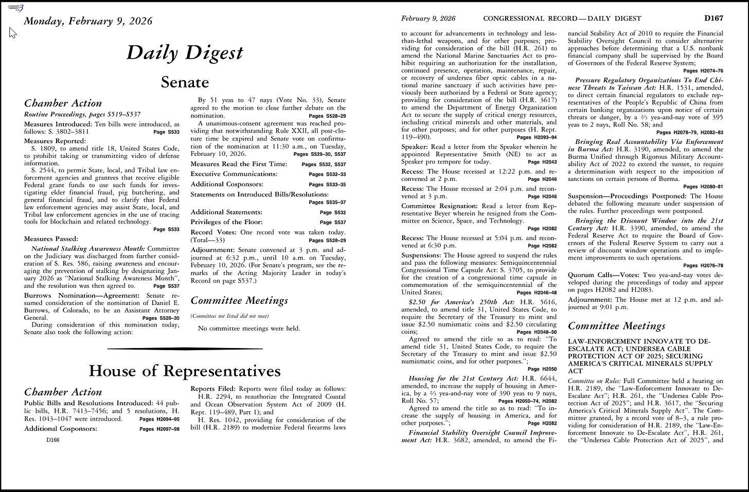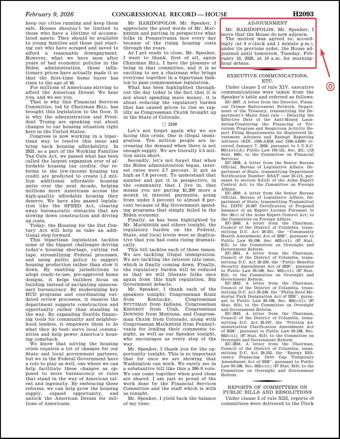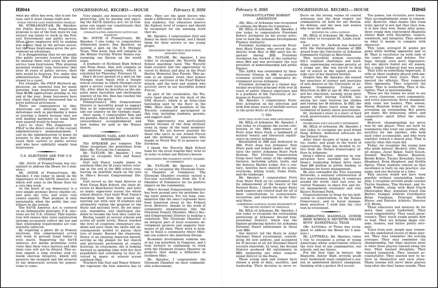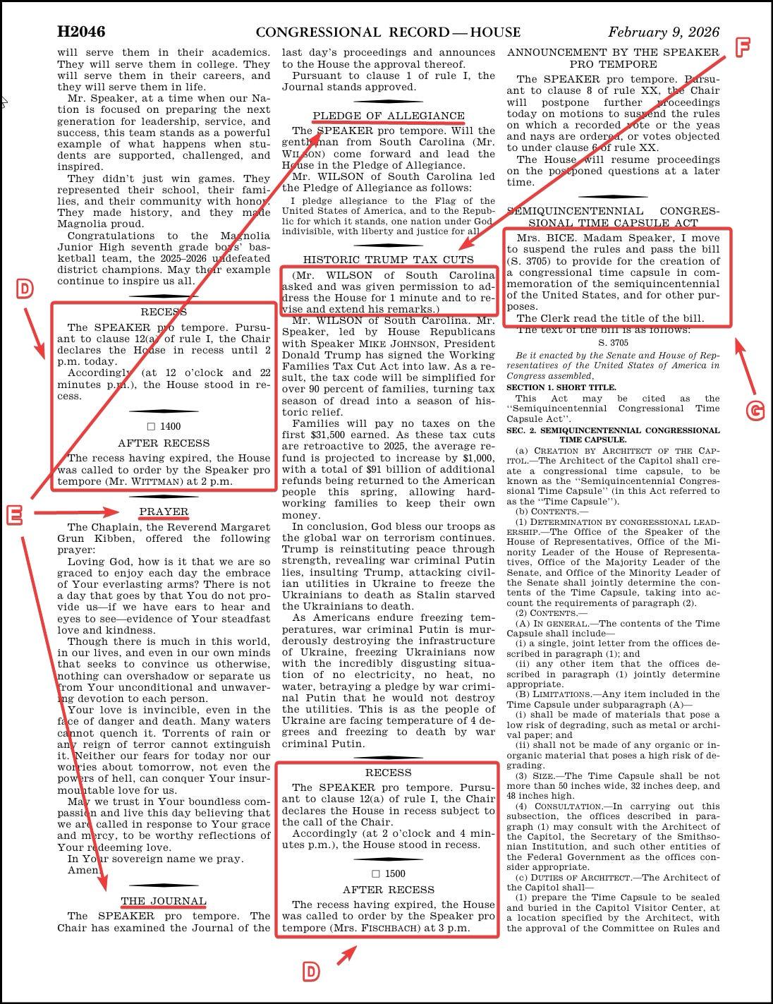 Let’s start. It’s the morning of February 10, 2026. You crack open yesterday’s congressional record and turn to the proceedings of the House. We can walk through it, letter by letter.
